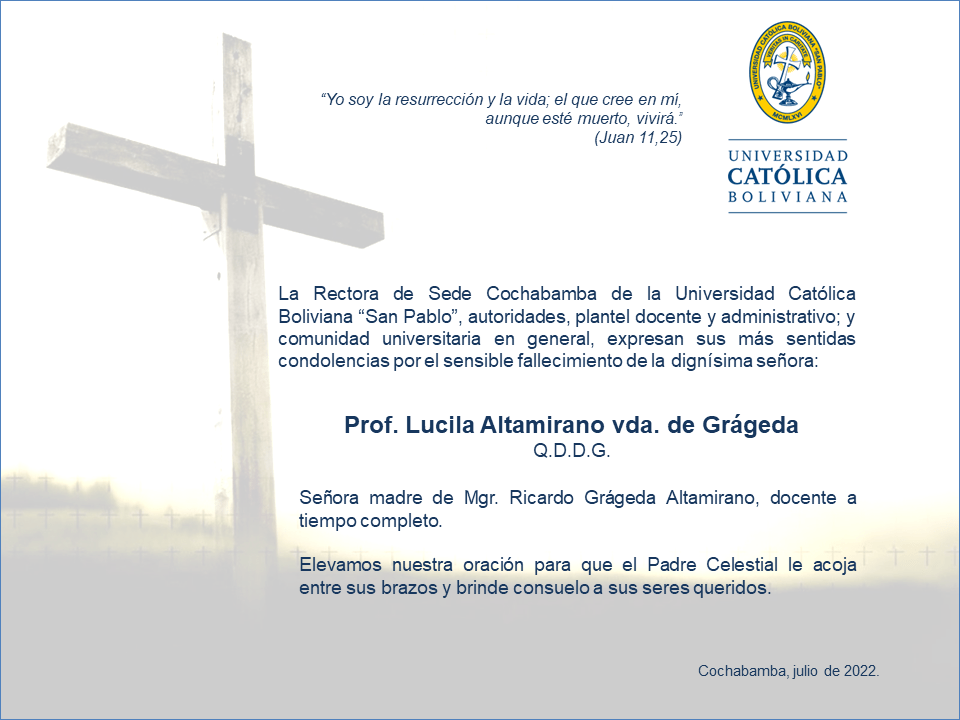 Ver imagen más grande Aviso condolencia – Prof. Lucila Altamirano vda. de Grágeda UCB2022-07-29T10:49:00-04:00julio 29th, 2022|Noticias|