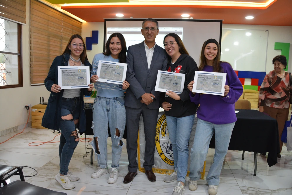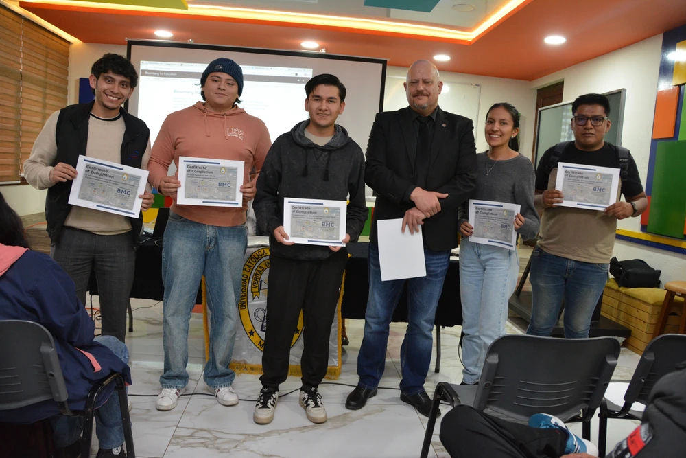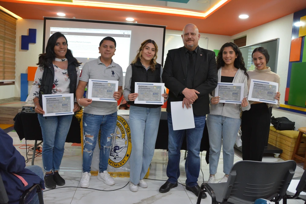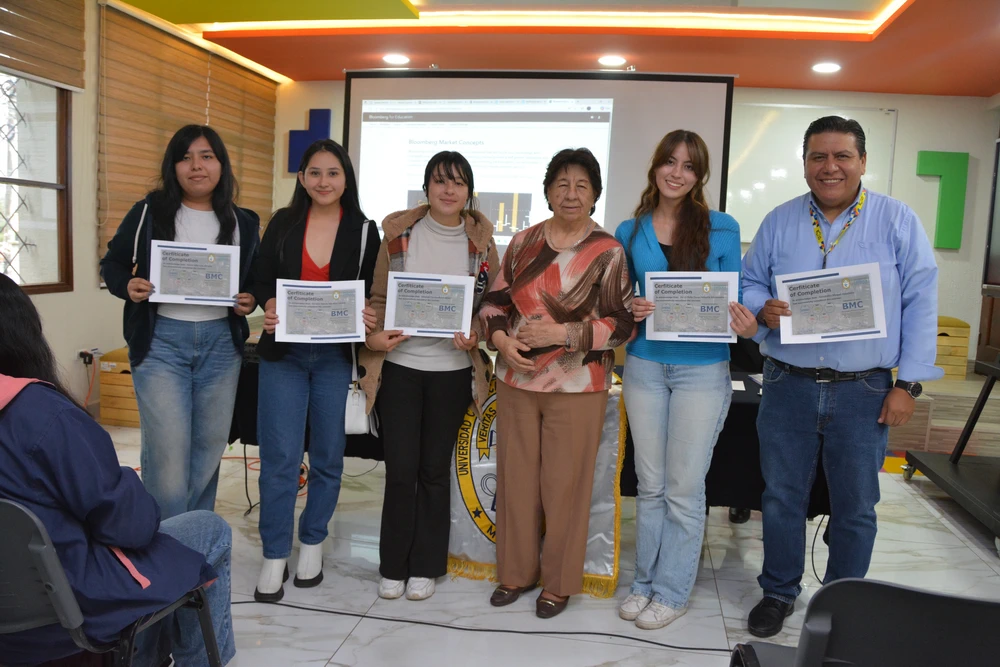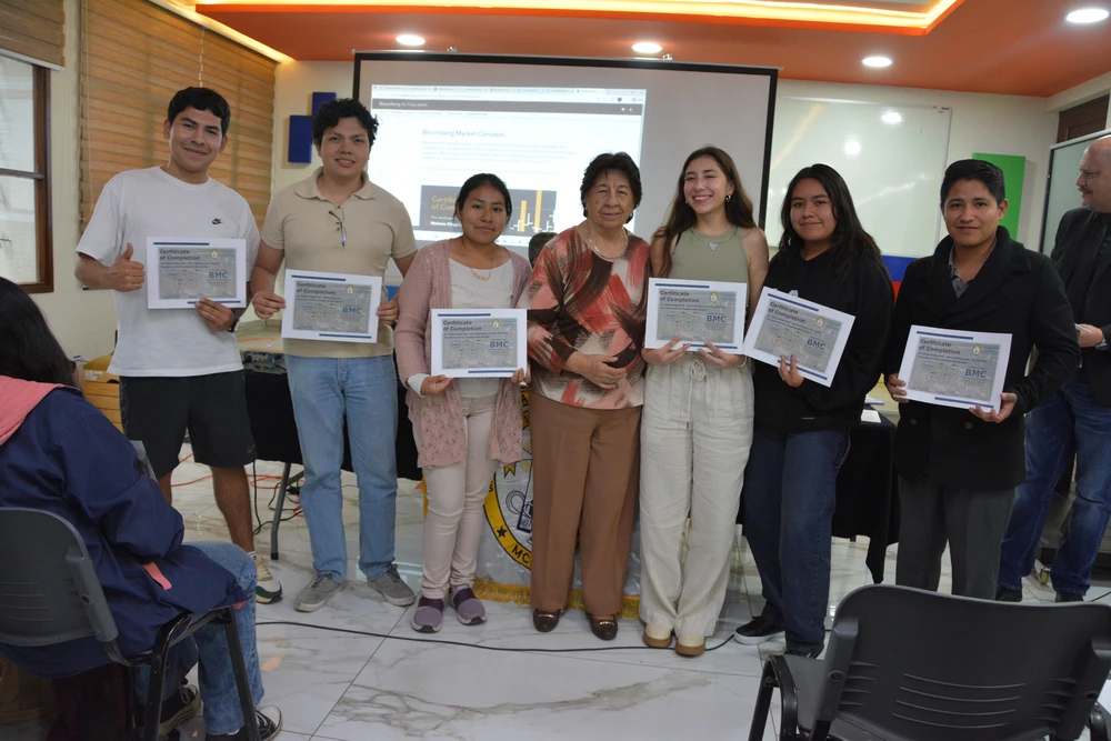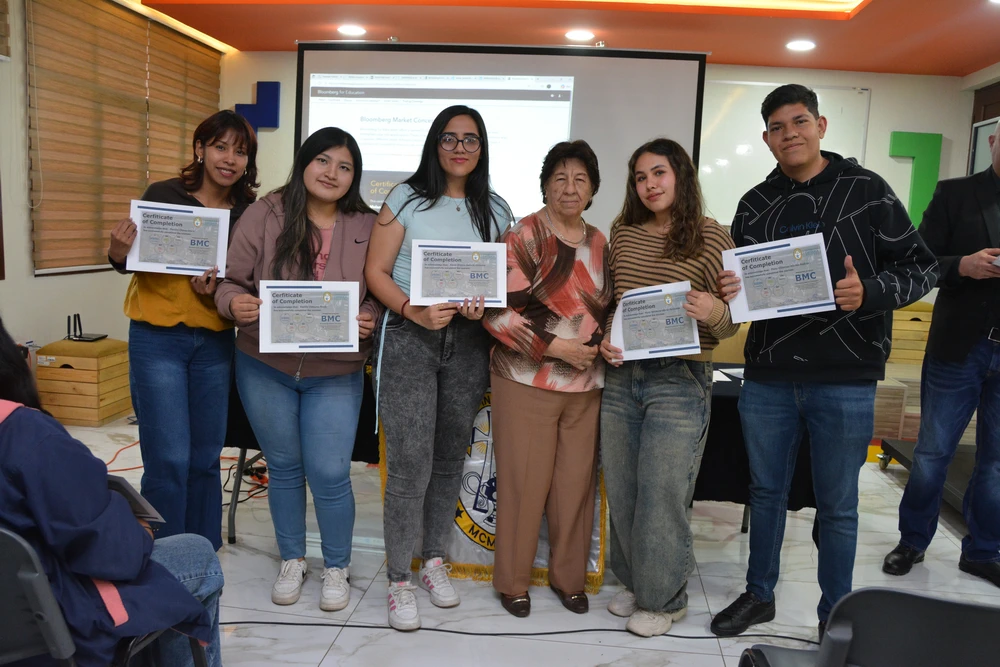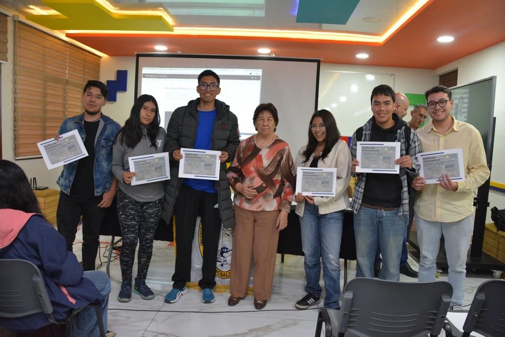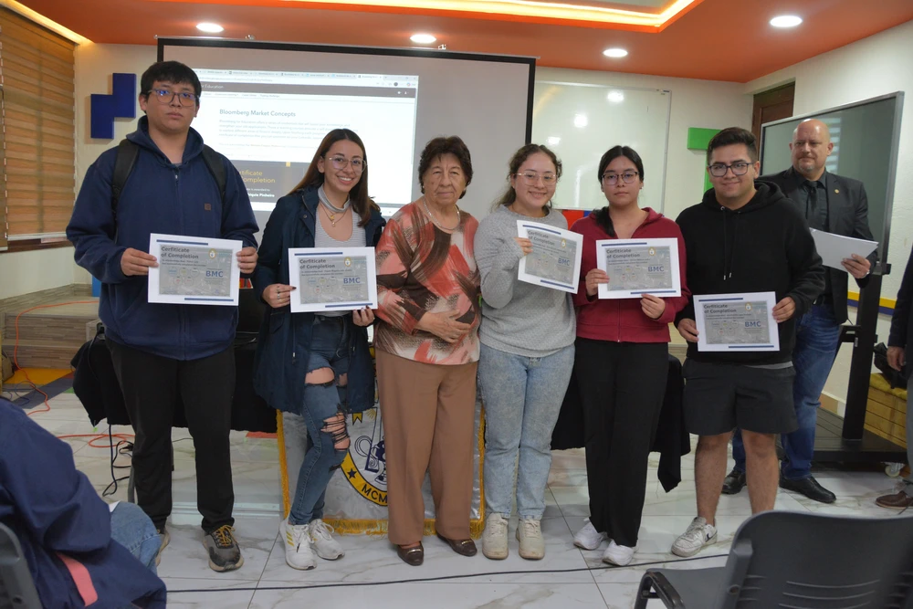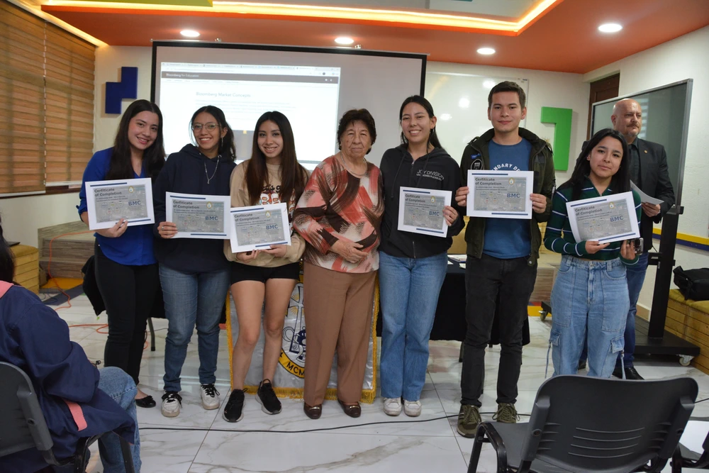Cerca de 100 estudiantes del Departamento de Administración, Economía y Finanzas han concluido exitosamente la certificación internacional Bloomberg Market Concepts (BMC), una de las credenciales más reconocidas a nivel mundial en el ámbito financiero. BMC es un programa de formación que introduce a los estudiantes a los principios esenciales de los mercados globales, combinando teoría, análisis de datos reales y el uso profesional de la plataforma Bloomberg.