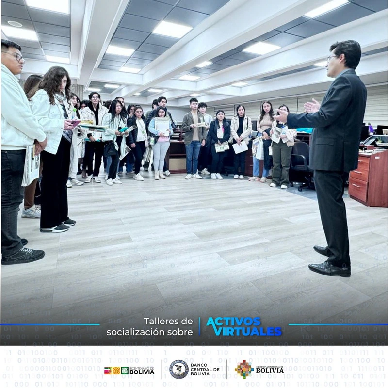 A través de la carrera de Ingeniería Financiera, estudiantes de la U.C.B. visitaron las oficinas del Banco Central de Bolivia en La Paz y participaron en un taller de capacitación sobre activos virtuales.