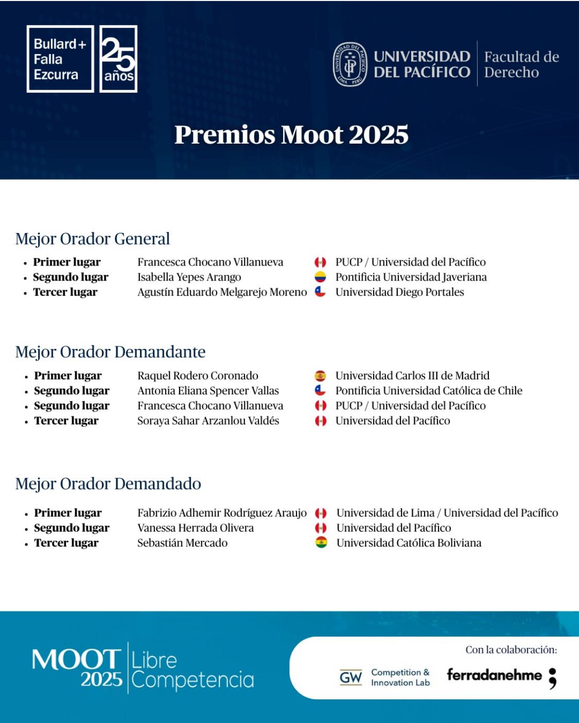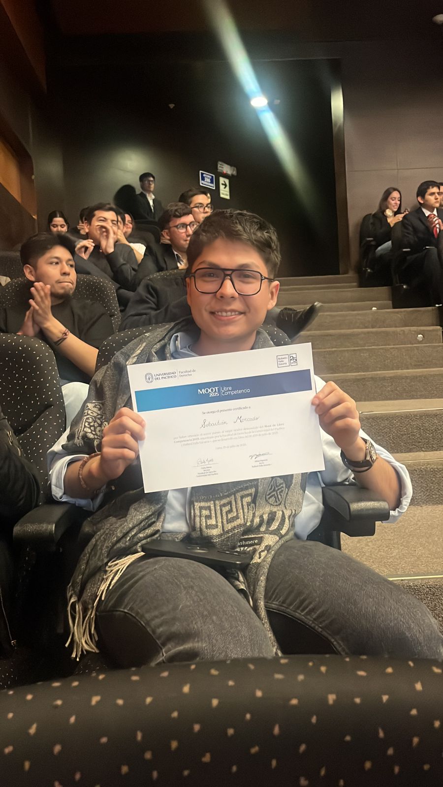 Con enorme satisfacción felicitamos a Sebastián Mercado de la Universidad Católica Boliviana “San Pablo” Sede Cochabamba, quien obtuvo el Premio al 3.er Mejor Orador – Parte Demandada en la Competencia de Derecho de la Competencia (Moot 2025), realizada en la ciudad de Lima.